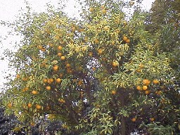 12月上旬、ユズはたわわに実を付け、黄色く熟れて枝重く垂れ下がっている。レモンも一昨年