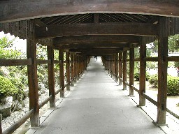 回廊があります。屋根が坂に沿って見事なカーブを描いています。お参り後は記念写真を撮ってここを後にしま