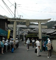 「下村湊」から上陸した参詣人はこの大鳥居をくぐって如来様や瑜伽大権現へ向かう 大鳥居の扁額には背中合わせに金比羅大権現と瑜伽大権現と彫られている ![]()