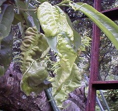 桃やネクタリンの葉に多く見られる病気