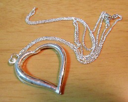 左の写真は私と家内の作品、右の写真は私の作品を拡大したもの ・今回はハート形のネックレス飾りを作りました。