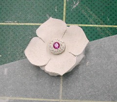 ・花心にルビーを埋め込んだら、先に作った花びらの中心に付けます。