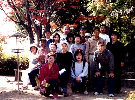 龍ノ口神社の境内の紅葉、紅葉をバックに記念写真 2001年11月26日撮影 この日は、お天気が良かったせいか、たくさんの人が山歩きを楽しんでいる。お年寄りの夫婦、
