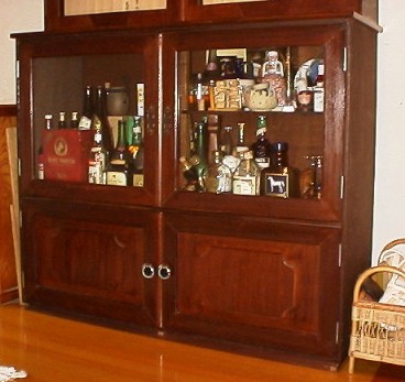 本格的な製作は本箱と洋酒棚をセットにした棚でした。(写真参照)この棚は図面を書いて作りました。2年がかりの