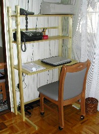 ファックス、ノートパソコンが載っています。本立てにはCD付きラジオ、料理本などが置いてあります。