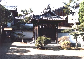 荒神さんの庭と石垣、小さな空間だが子供の頃には紙芝居なども来ていた。 近くを流れる高屋川の支流には、鬼やんまや、蚊取りやんまや、お歯黒トンボがたくさんいた。高屋川のほとりには