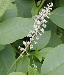 左の花は今の季節よく見かける花である。花が終わると紫色の実を付ける。花には特有の芳香がある 右は俗にヤマゴボウと言われている草の花だ。この花も後には赤紫の実を付ける ![]()
