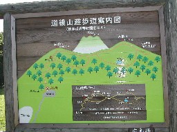 準備体操もしました。こうして目的地に向けて歩き始めました。登山口の看板を見ますと道後山(1271m)と