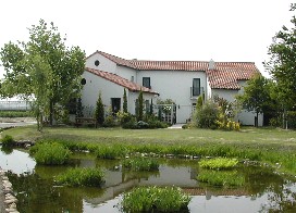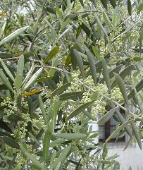水車小屋のそばにあったオリーブ(花が咲いていた)、そして池に映る姿も美しいモデル農家 ![]()