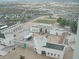 中央に聳える高い塔の最上階からは場内はもちろんの事、周辺の広大な田畑を一望する事が出来る。