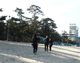 松林があり国道と海辺を遮っています。さすがに、この季節、一人の観光客も地元の人も見かけませんでした。