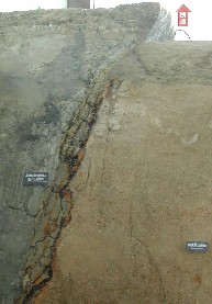 大きな断層が走っています。側溝も折れ曲がっています。 ![]()