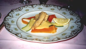 家族そろって楽しい食事のひととき 幾皿かの一つ、豪華な食事がここの売りです ここには水軍(熊野灘を本拠とする海賊であったといいます)であった安宅氏が三好氏の命を受け、淡路平定の