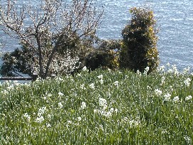 海辺にありました。一方を海に面した急斜面から、谷間となっている一方の山肌にかけて、一面の水仙が咲き乱れて