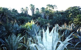 でもあるデイゴ、カナリー椰子、巨大な団扇サボテンや柱サボテンが所狭しと植えられていた。