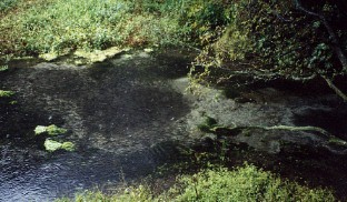 思えるような色であった。私達がのぞき込んでいる源流付近にはたくさんの魚が群れていた。全てが鮎だとの事だった。