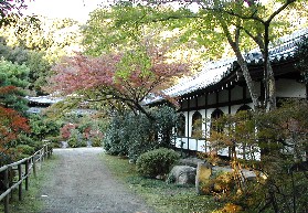 山近く、境内の一番奥にある弁財天をお祀りした小さな赤いお堂、その手前にある赤い太鼓橋、これらが池に映りとても美しい。 紅葉はなくとも絵になる景色だ。 右の建物はお坊さん達の生活しているところだろうか、ここも手入れの行き届いた庭がきれいだ。 早朝からの長い旅の一日目は醍醐寺で終わろうとしていた。醍醐寺前のバス停でバスに乗り京阪電鉄の