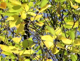 センダンの木が葉を落としてしまい実だけが残っていた。右は長い長い築地塀。 ![]()