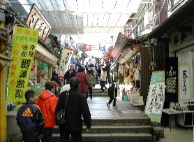 石段の両脇には軒を接するように土産物屋が並んでいた。ここを抜けると、やがて大門が見えてくる。
