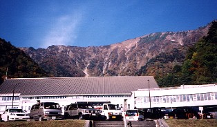 を遙かに越えるような山々です。すそ野の紅葉と荒々しく切り立った山の織りなす景色は、ただただ見事という他はないような