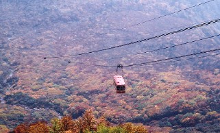 私達は紅葉の高山地帯からほとんど平地に近いところまで下りてきました。ここからは再びケーブルカーに乗って麓まで