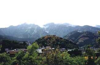 山にかかった霧が立ち上り、新緑が目に眩しい。周辺の山には椎の木が多いのか、山肌を黄色く