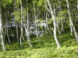 の樹間を明るくしていました。表現のしようがないくらい美しい景色でした。バスはこのぶな林の中を走り