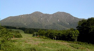 円錐形の山にはところどころに雪が残っていました。富士山にも似た岩手山は岩手県のシンボルとも言う