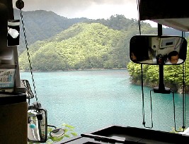 下りました。山間部に入ってから道は急に狭くなりました。途中、何カ所もの橋は何度も切り返しをしなけ