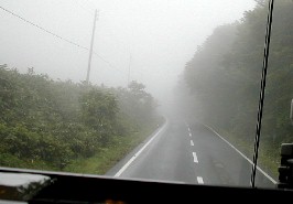 リンゴ園を後にして八甲田に入った。途中から急に霧が濃くなり始めた。 ![]()