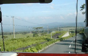 すれば元に戻るのでしょうが、あちこちの緑が削られ火山灰土が露出していました。ホテルから少し下った