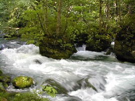 教えて貰った白神山地の入口当たりまで歩いていくことにしました。近くを流れている川は水嵩が増し、