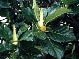 左は沖縄の代表的な植物「ガジュマル」太く大きな根が無数幹から地面に下がっている 右の二枚は内地では見たこともないような南国の植物