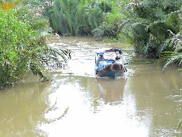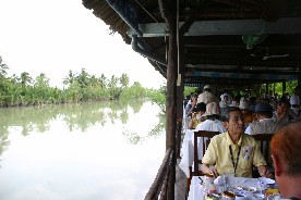 立ち寄ったレストランはメコンデルタの細い水路沿いにあった。水路の向かい側はデルタ特有
