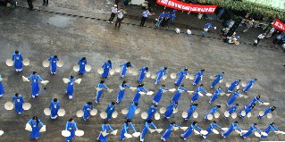 やがて、目の覚めるような青いアオザイを着た若い女性達が白い傘を持って踊り始めた。