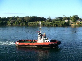 私達を迎えに来たタグボート。(写真左)