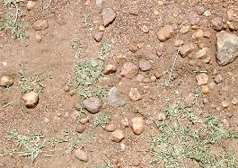 赤い大地の証拠はこの土の色だった。小石混ざりの土は赤い色をしていた。(写真左)