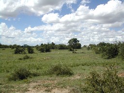 代表的なマサイマラの景色。草原とは言え草ばかりではなく、丈の低い木々もたくさん生えていた。