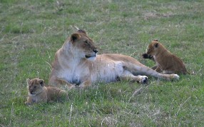 ライオンは夜行性の動物だ。夜の間、一家でハンティングにでも行ったのであろうか。