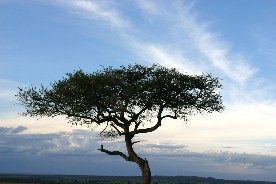 マサイマラの空は美しい。日本の秋の空を思わせるような筋状の雲が放射状に広がっていた。
