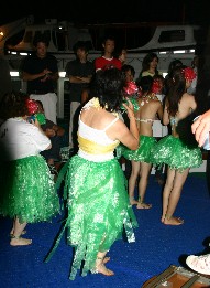 私も参加した。カラオケボックスのないこの船にあってはカラオケファンがたくさん集まった。