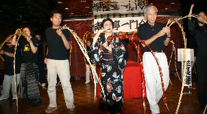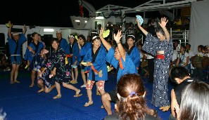 何はともあれ賑やかなのが一番と阿波踊りで盛り上がる。(写真右)