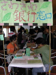 さわさわ銀行なる助け合いを目的とした銀行も開かれた。(写真左)