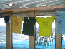船内ではエイズ防止キャンペーンや地雷撤去等と言った、色んな趣旨での募金が行われて