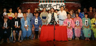 こちらは審査員席、菊千代師匠、中村さん、マシューが舞台を見ていた。「みんな良くやるなあ」とあきれ顔?。(写真右)