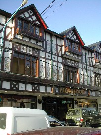 スイスの建物のような形をした商店。(写真左) これは一目で本屋さんだと分かる建物。(写真右)