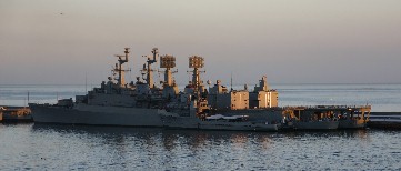 ここは軍港でもあった。こんな戦艦が何艘か停泊していた。(写真右)