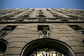 そして、この重厚な建物は銀行だろうか。入り口にあるレリーフが印象的だった。(写真右)