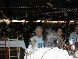 売る店がたくさん並んでいた。その内の一軒が昼食会場であった。田舎風の建物の裏庭に屋