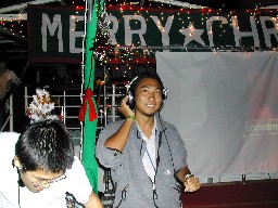 クリスマスイブの夜、プールサイドのデッキではかくも賑やかな催し物が。
